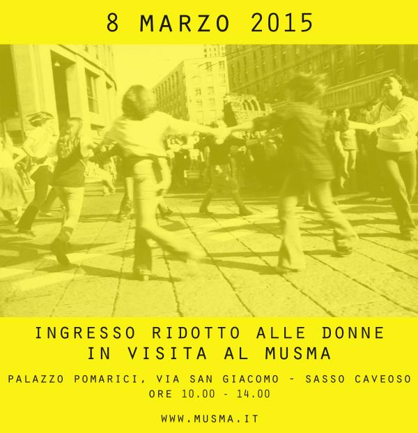 Domenica 8 marzo, Giornata Internazionale della Donna, il MUSMA offre, negli orari di apertura del Museo, dalle 10 alle 14, l’ingresso ridotto alle visitatrici. Con un biglietto di 3.50 sarà possibile visitare la collezione permanente, la mostra temporanea “Pasolini a Matera. Il Vangelo secondo Matteo Cinquant’anni dopo” e assistere alla proiezione del documentario "Voci e forme. Donne artiste degli anni Settanta".