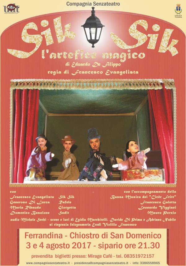 Sik Sik "l'artefice magico" di E. De Filippo regia F. Evangelista 3-4 agosto Chiostro San Domenico Ferrandina ore 21.30