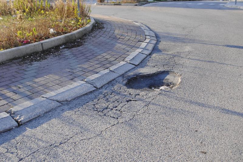 Buca e segnale stradale in viale Italia a Matera (foto SassiLand) - 3 gennaio 2013